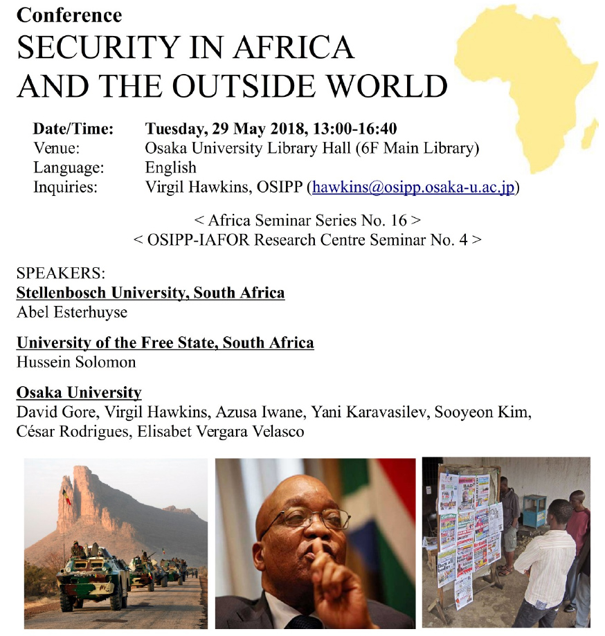 On May 29, 2018, The OSIPP-IAFOR Research Centre played co-host to a Conference with the Southern African Centre for Collaboration on Peace and Security (SACCPS), the University of the Free State (UFS, South Africa), and the Osaka School of International Public Policy (OSIPP), Osaka University.