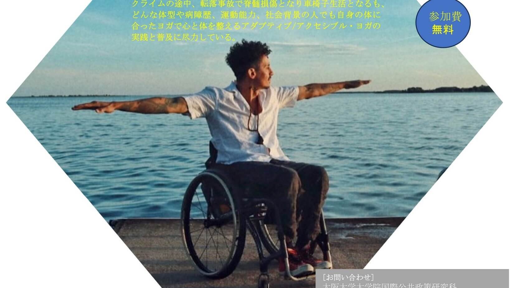 そこで、 来たる2023年9月13日には、 山岳転落事故で車椅子生活になりながらもヨガインストラクターとして自立し、アダプティブ/アクセシブル・ヨガ指導者として世界でご活躍のロドリゴ・ソウザ氏をお招きし、「障がいがあってもヨガも呼吸法も実践できる、そして、インストラクターとして他者の力にもなれる」という力強いメッセージが込められた特別レクチャーを開催します。また、実際に車椅子インストラクターの導きによって一緒に心と体に響き渡るヨガを体験した後、私たちが産官学民で連携し、いかなる意識変革や行動変容につなげていくか、ラウンドテーブル・ディスカションを行います。